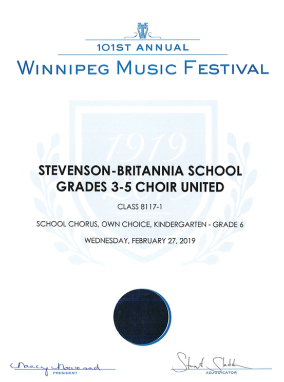 Congratulations to our choirs on outstanding performances to the Winnipeg Music Festival yesterday. It was a beautiful day of making music and listening to other choirs from around the city.
